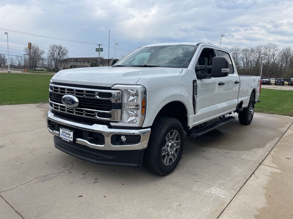 Oxford White 2025 Ford F-250SD XLT 4D Crew Cab 7.3L V8 PFI SOHC 16V Federal 405hp 10-Speed Automatic 4WD Clean CARFAX. Recent Arrival! Odometer is 24710 miles below market average!